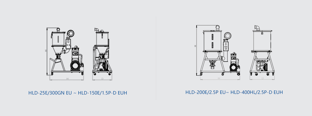 注:选配光电料斗配置时,型号参考如下:如HLD-300HL/2.5P-D EUH机器选配光电料斗配置,型号为:HLD-300HL/2.5P-DE EUH
