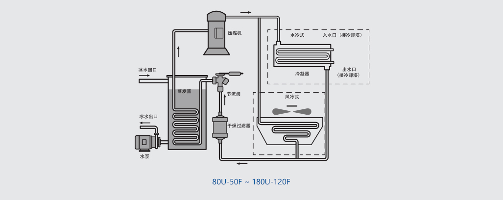 | 蒸发器 | 类型 | 水箱沉浸式 | 壳管式蒸发器 | ||||||||||