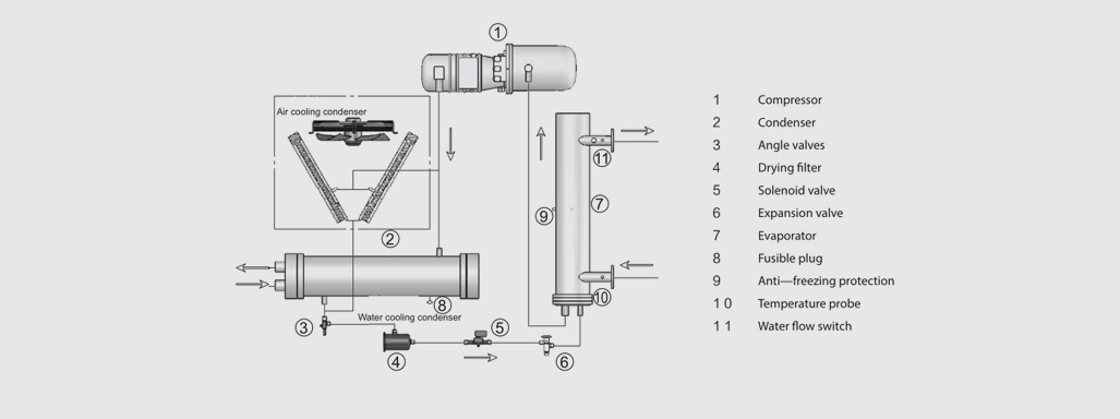 | Condenser | Type | High performance male screw shell and tube | ||||||||